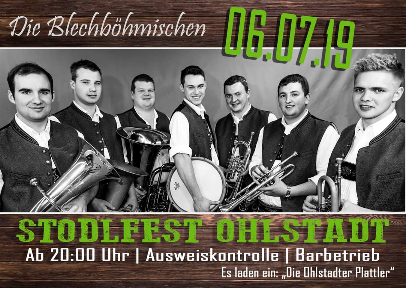 Drei Burschen der heutigen Sieben-Mann Besetzung ( Franz Promberger, Max Höbel, Moritz Heiserer) waren im Kohlgruber Kursaal beim Konzert des Werdenfelser Auswahlorchesters vertreten. Gründer Max Höbel nutzte das Konzert und somit waren " die Blechböhmischen " geboren.